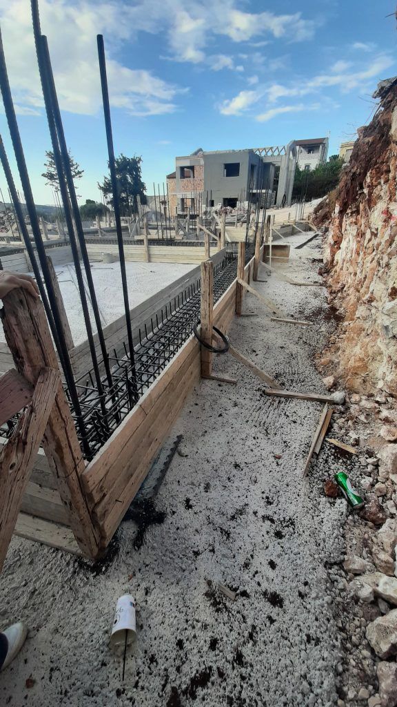 The shuttering and steels are laid for the strap beams which will support the floor slab. We think the level will be at least 60-70cm higher than the cleanng concrete level.